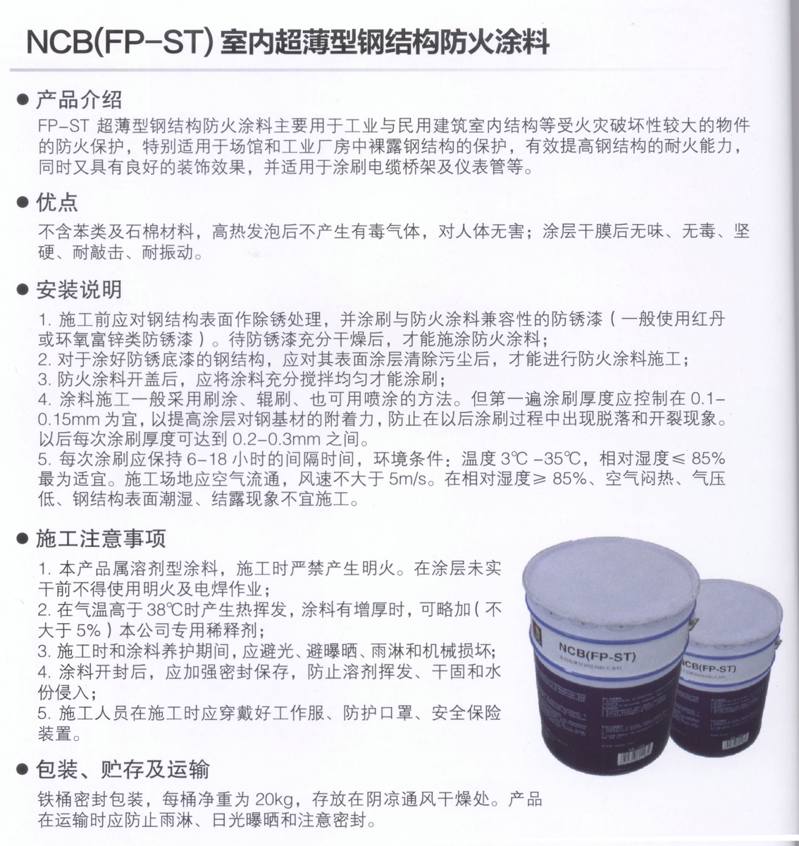 十八、NCB(FP-ST)室内超薄型钢结构防火涂料