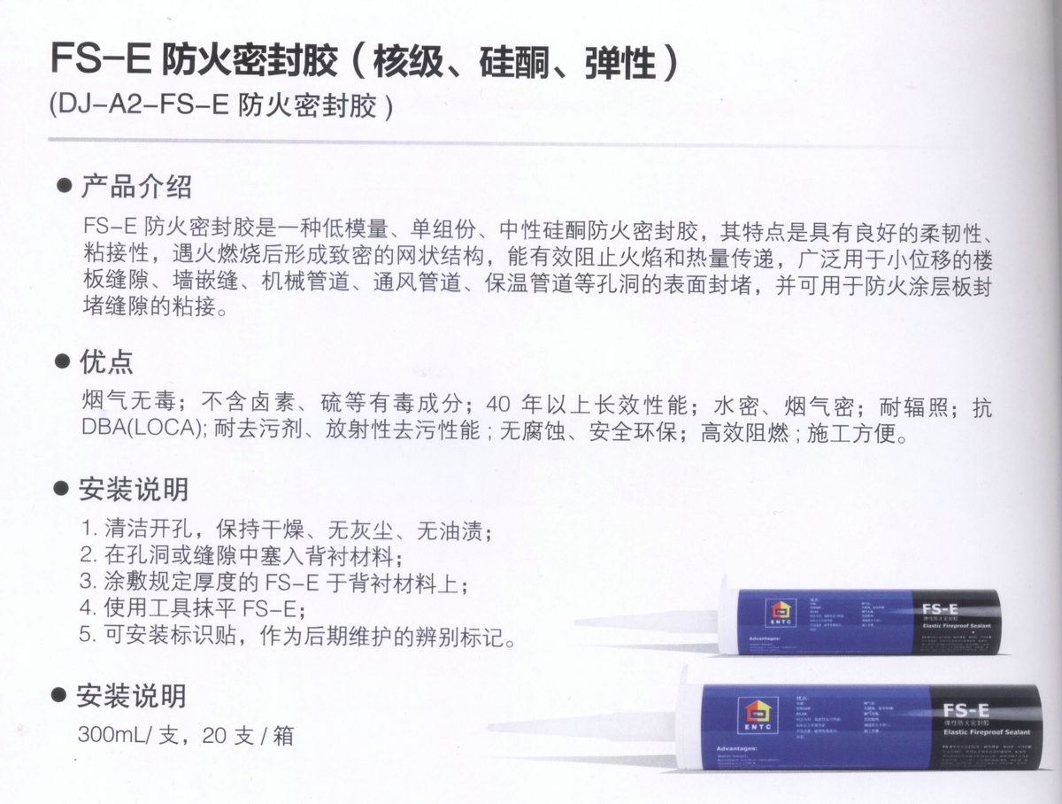 六、FS-E防火密封胶(核级、硅酮、弹性)